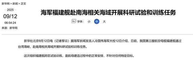 中国海军清晨官宣,福建舰已经通过台湾海峡,正赶赴南海海域执行科研实验和训练任务。中国海军强调,此次的航母跨区试验训练,是航母建造过程中的正常安排。